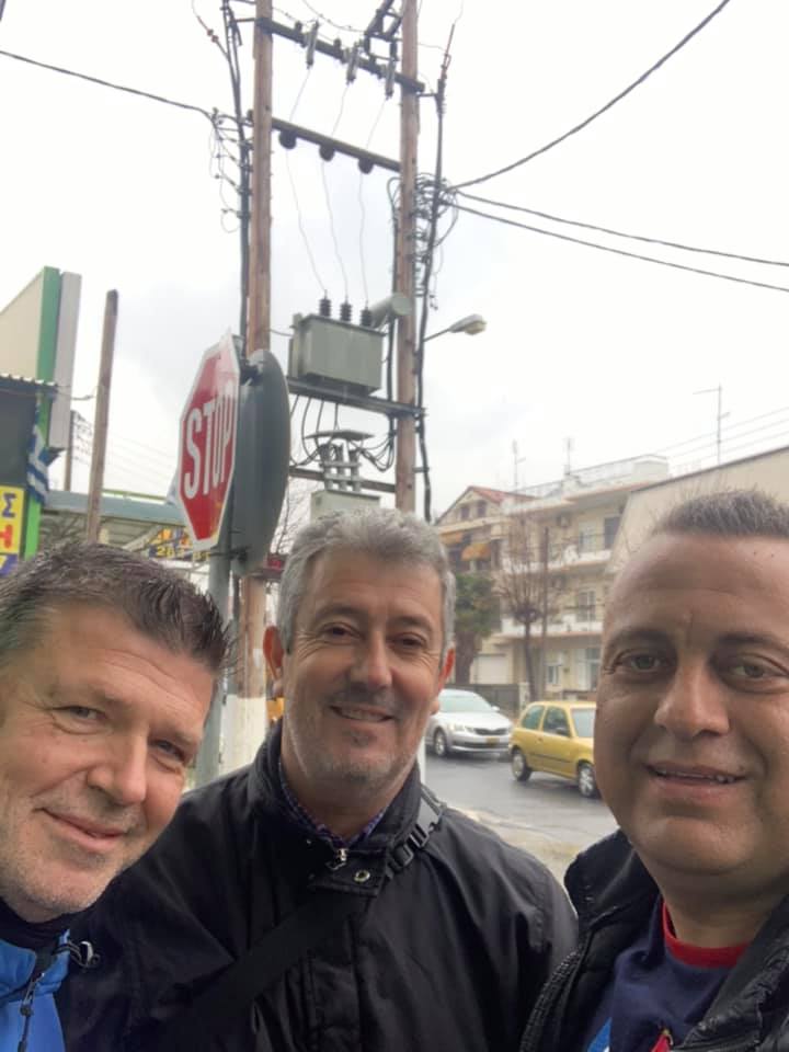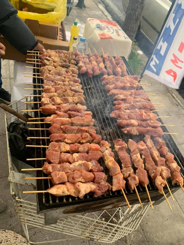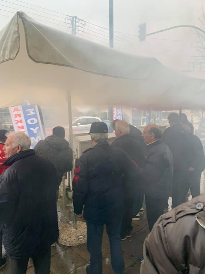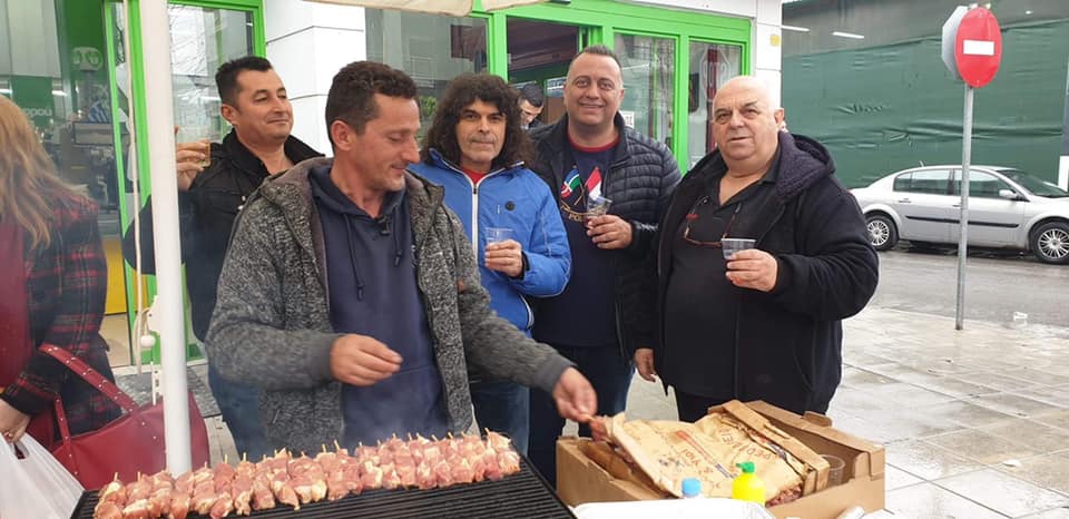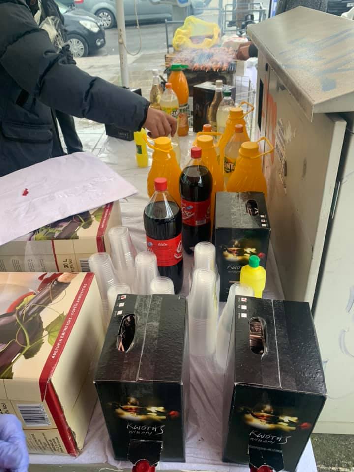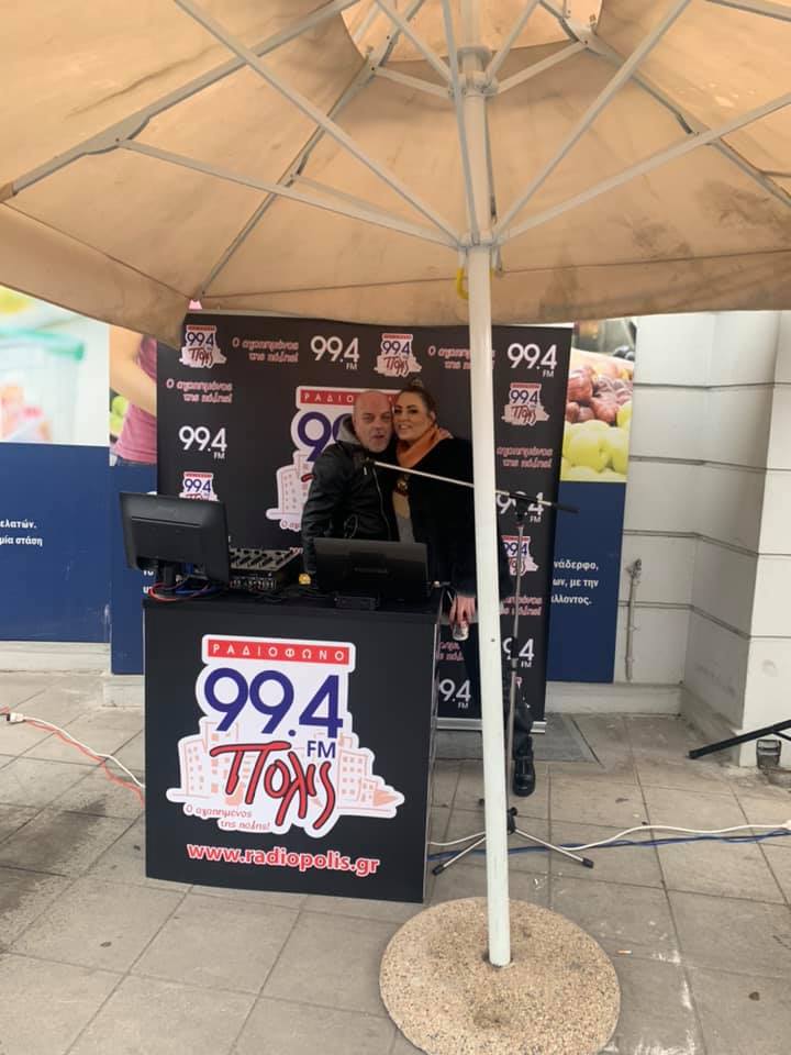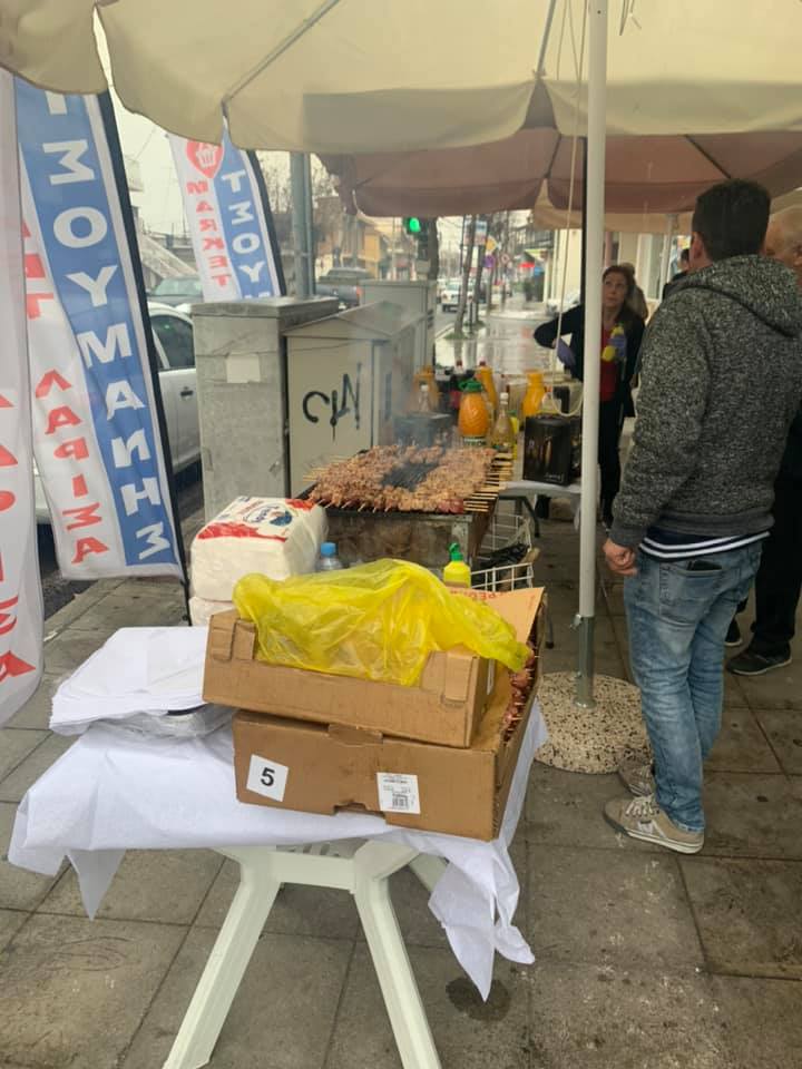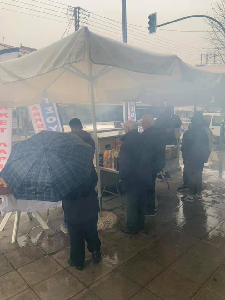Έψησαν και κέρασαν κάτω από συνεχόμενη βροχή…σουβλάκια, λουκάνικα, αναψυκτικά κρασί και πολύ μουσική από το Ράδιο Πόλις 99,4 που εξέπεμπε ζωντανά 12 με 3 το μεσημέρι.