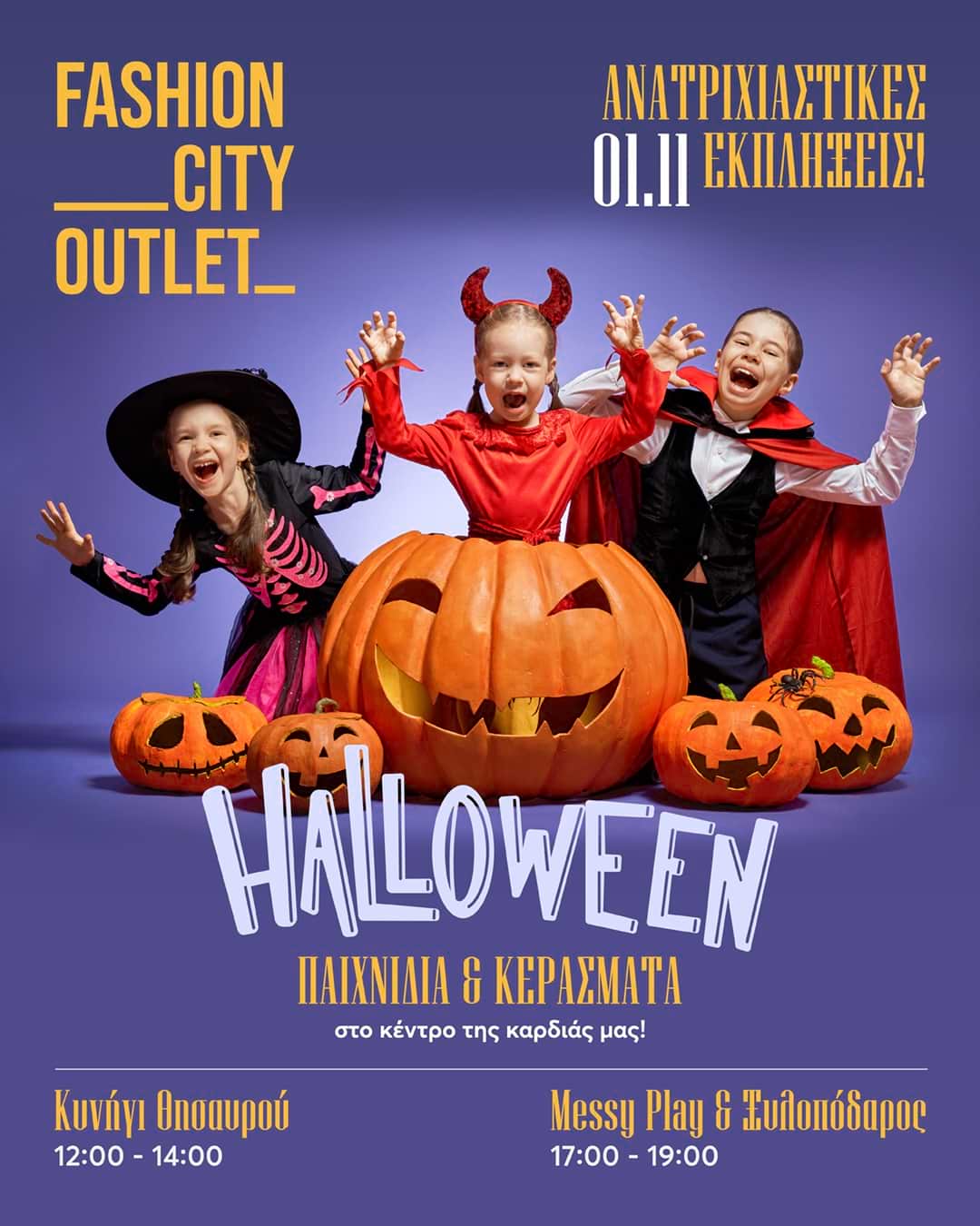Το φθινόπωρο κορυφώνεται με… ανατριχιαστικά διασκεδαστικό τρόπο στο Fashion City Outlet! Το εμπορικό κέντρο «της καρδιάς μας» υποδέχεται το HALLOWEEN με ένα Σαββατοκύριακο γεμάτο φαντασία, παιχνίδι και εκπλήξεις για μικρούς και μεγάλους.