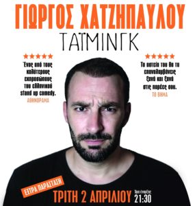 Ο Γιώργος Χατζηπαύλου έρχεται ξανά στη Λάρισα την Τρίτη 2 Απριλίου με την υποστήριξη του Ράδιο Πόλις 99,4. Για μία μόνο βραδιά, θα βρεθεί στα Victoria Cinemas, παρουσιάζοντας την ολοκαίνουρια stand-up comedy παράστασή του με τίτλο «Τάιμινγκ». [the_ad id="26081"] ⬆️ Στο κάτω μέρος της σελίδας κάνε LIKE, COMMENT, SHARE, και μπες στην κλήρωση για 3 διπλές προσκλήσεις που θα γίνει την Δευτέρα 1 Απριλίου στις 12 το μεσημέρι. ✅ Οι νικητές θα δημοσιευθούν στο facebook.com/radiopolis 02/04/19 - Ο Γιώργος Χατζηπαύλου […]