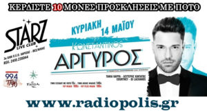 insert_link Διαγωνισμοί ΚΕΡΔΙΣΤΕ ΠΡΟΣΚΛΗΣΕΙΣ ΓΙΑ ΤΟΝ ΚΩΝΣΤΑΝΤΙΝΟ ΑΡΓΥΡΟ Το Ράδιο Πόλις 99,4 δίνει την δυνατότητα σε 10 ακροατές του ραδιοφώνου να κερδίσουν 10 μονές προσκλήσεις με ποτό για την Κυριακή 14 Μαΐου στο Starz live Club με τον Κωνσταντίνο Αργυρό. Στο κάτω μέρος της σελίδας με το facebook προφίλ σου, κάνε LIKE, COMMENT (ένα σχόλιο), SHARE (κοινοποίηση), και μπες στην κλήρωση για 10 τυχερούς που θα γίνει το Σάββατο 13 Μαΐου στις 3 το μεσημέρι. Όλοι οι νικητές θα ειδοποιηθούν με προσωπικό μήνυμα στο προφίλ τους […] today9 Μαΐου 2017