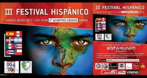 insert_link Events 3ο Φιλανθρωπικό Festival Hispánico | 06.05.17 Το Ινστιτούτο Ισπανικής Γλώσσας και Πολιτισμού Λάρισας ´´HISPAMUNDO´´ διοργανώνει με την υποστήριξη του Ράδιο Πόλις 99,4 το 3ο Φιλανθρωπικό Festival Hispánico, στο αμφιθέατρο του 4ου Δημοτικού Σχολείου Λάρισας, το Σάββατο 6 Μαϊου, στις 19:00. Η τρίτη έκδοση του ετήσιου φιλανθρωπικού φεστιβάλ έρχεται και φέτος ταξιδεύοντας μας στις ισπανόφωνες χώρες και την κουλτούρα τους μέσα από το χορό, το τραγούδι, τη λογοτεχνία, τη μουσική και την τέχνη της φωτογραφίας. Η διεύθυνση, οι μαθητές και οι φίλοι του Ινστιτούτου προετοιμάζουν κάθε […] today3 Μαΐου 2017