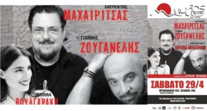 Στον Μύλο 1927 θα βρεθούν το Σάββατο 29 Απριλίου, οι Λαυρέντης Μαχαιρίτσας και Γιάννης Ζουγανέλης. Μαζί τους θα είναι η Παυλίνα Βουλγαράκη. Μια βραδιά που προτείνει και υποστηρίζει το Ράδιο Πόλις 99,4 Ο συνδυασμός μιας εξαιρετικής επιλογής τραγουδιών του Λαυρέντη Μαχαιρίτσα, με την ανατρεπτική σάτιρα του Γιάννη Ζουγανέλη και τις μελωδίες της Παυλίνας Βουλγαράκη, δημιουργούν ταξίδια. Επικοινωνούν μαζί μας και χαρίζουν άλλοτε συγκινησιακά συναισθήματα κι άλλοτε γέλια μέχρι δακρύων. Με τραγούδια που γελάνε, με τραγούδια που σου […]