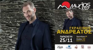 Ο Γεράσιμος Ανδρεάτος ένας από τους πιο χαρακτηριστικούς τραγουδιστές της εποχής του έρχεται την Παρασκευή 25 Νοεμβρίου στον Μύλο 1927 με την υποστήριξη του Ράδιο Πόλις 99,4... Μια συνάντηση, στην οποία ο αγαπημένος τραγουδιστής Γεράσιμος Ανδρεάτος, με την μοναδική λαϊκή φωνή , υπόσχεται να μας ταξιδέψει στο χρόνο, με τραγούδια που όλοι έχουμε λατρέψει. Θα ερμηνεύσει αγαπημένα τραγούδια τα οποία υπήρξαν σταθμοί στην καριέρα του και θυμίζουν την συνεργασία του με σημαντικούς συνθέτες καθώς και διαχρονικές λαϊκές επιτυχίες […]