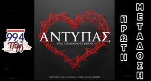 insert_link Νέες Κυκλοφορίες ΑΝΤΥΠΑΣ – ΕΝΑ ΑΓΚΑΘΙΝΟ ΣΤΕΦΑΝΙ (ΠΡΩΤΗ ΜΕΤΑΔΟΣΗ) Ένα τελείως διαφορετικό τραγούδι παρουσιάζει πρώτα στο Ράδιο Πόλις 99,4 ο Αντύπας λίγο πριν την κυκλοφορία του νέου του album. Ένα αγκάθινο στεφάνιφοράω πάνω στην καρδιάμέσα μου έχεις πεθάνειδεν είσαι πουθενά...Ένα αγκάθινο στεφάνιμην τ΄ αγγίζεις, θα κοπείςμ΄ όλα αυτά που μου ΄χεις κάνεινα φύγεις, να χαθείς... «ΕΝΑ ΑΓΚΑΘΙΝΟ ΣΤΕΦΑΝΙ»με την υπογραφή του Τόνι Μαυρίδη στη μουσική και του Νίκου Γρίτση στους στίχους ΤΟ ΑΚΟΥΣ ΠΡΩΤΑ ΣΤΟΝ ΠΟΛΙΣ ΑΚΟΥΣΕ ΤΟ ΚΑΙ ΕΔΩ...ΠΑΤΑ PLAY {jamedia src="images/audio/Antypas-Stefani.mp3" type="audio" […] today25 Σεπτεμβρίου 2016
