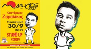 insert_link Events ΖΑΡΑΛΙΚΟΣ | Stand Up Comedy | ΜΥΛΟΣ | 30/9/16 Ο "όρθιος κωμικός" Χριστόφορος Ζαραλίκος έρχεται με την υποστήριξη του Ράδιο Πόλις 99,4 στον Μύλο 1927 την Παρασκευή 30 Σεπτεμβρίου και σατιρίζει τη φαιδρή πλευρά της καθημερινότητας, «παίζει» με το κοινό, και ως γνήσιο πειραχτήρι δεν αφήνει τίποτα ασχολίαστο! Σε μία απρόβλεπτη και προκλητική παράσταση, όπου υπάρχει κέφι, τρελή διάθεση και χιούμορ, χωρίς επίσης να λείπουν οι εύστοχοι σχολιασμοί (για όλους και για όλα), η καυστική σάτιρα και βεβαίως οι αυτοσαρκασμοί, αυτοσχεδιασμοί και διάλογοι με το κοινό! Ο […] today30 Σεπτεμβρίου 2016
