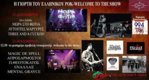 Ο Σύλλογος φίλων rock and metal μουσικής Λάρισας παρουσιάζει το Welcome to the show festival με την υποστήριξη του Ράδιο Πόλις 99,4. Το απόλυτο χειμερινό φεστιβάλ Ελληνικής Rock και όχι μόνο . Το φεστιβάλ θα λάβει χώρο στο Stage (Club Λάρισας Ήρας και Φιλίππου 8) Παρασκευή 22 και Σάββατο 23 Δεκεμβρίου 2017. Θα συμμετέχουν συγκροτήματα που έχουν γράψει μεγάλη ιστορία στην Ελληνική σκηνή αλλά και ανερχόμενα συγκροτήματα. Αναλυτικά Οι Πόρτες του Stage θα ανοίξουν για το φεστιβάλ την Παρασκευή 22 […]
