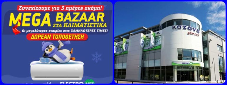 Electronet Β.Κ. Καζάνα: Συνεχίζεται για 3 μέρες ακόμη!!! MEGA BAZAAR στα κλιματιστικά!