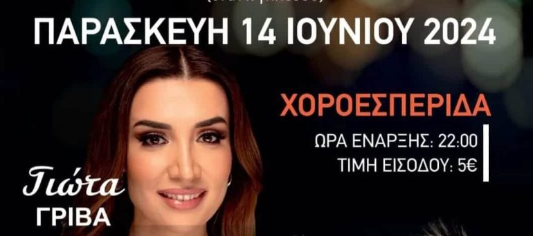 Παρασκευή 14 Ιουνίου, η Γιώτα ΓΡΙΒΑ στα Πλατανούλια