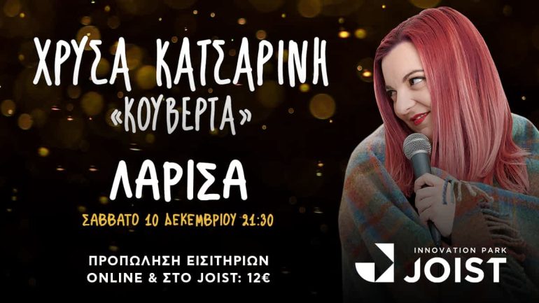 Μετά την πρώτη επιτυχημένη σεζόν της παράστασης της με sold out εμφανίσεις στο θέατρο Αθηναϊς, περιοδεία σε 31 πόλεις της Ελλάδας και 11 πόλεις της Ευρώπης, η Χρύσα Κατσαρίνη επιστρέφει στη Λάρισα, στο Πάρκο Καινοτομίας JOIST το Σάββατο 10 Δεκεμβρίου στις 21:30. Μετά το «Ό,τι πολυτιμότερο έχω», την πρώτη solo stand up comedy παράστασή της, επιστρέφει με την πιο σκοτεινή, εξομολογητική και συνάμα ξεκαρδιστική παράσταση που έγραψε μέχρι σήμερα, την «Κουβέρτα». Τα βάζει με τους ομοφοβικούς, τους σεξιστές και τις […]