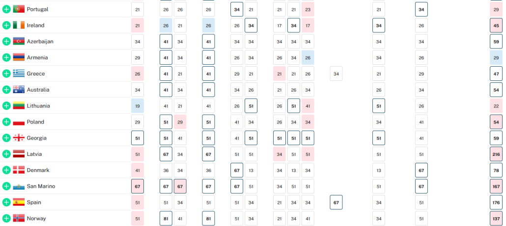 Όσο εσείς ετοιμάζεστε για έναν “καυτό” Eurovisionικό Φεβρουάριο με τα αποκαλυπτήρια των περισσότερων συμμετοχών ενόψει Μαΐου, οι bookers έχουν πιάσει ήδη δουλειά, με την ενότητα του νικητή της Eurovision 2025 να προσφέρεται ήδη σε κάποιες εταιρείες. Έτσι, δράττουμε της ευκαιρίας και σας παρουσιάζουμε τα έως τώρα για τον επόμενο διαγωνισμό.