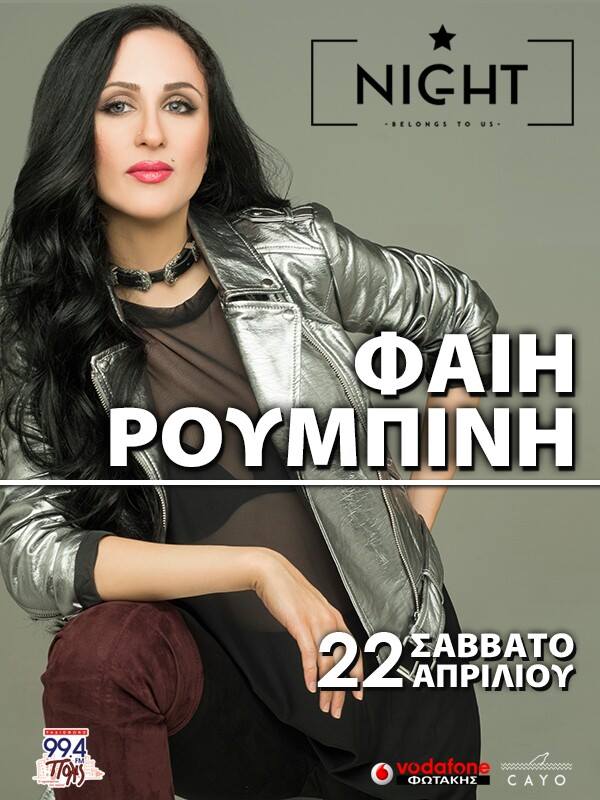 Σάββατο 22 Απριλίου η Φαίη Ρουμπίνη θα μας χαρίσει μια super night… στο Night Βενιζέλου & Δήμητρας.