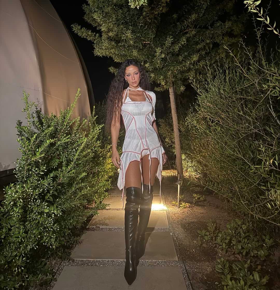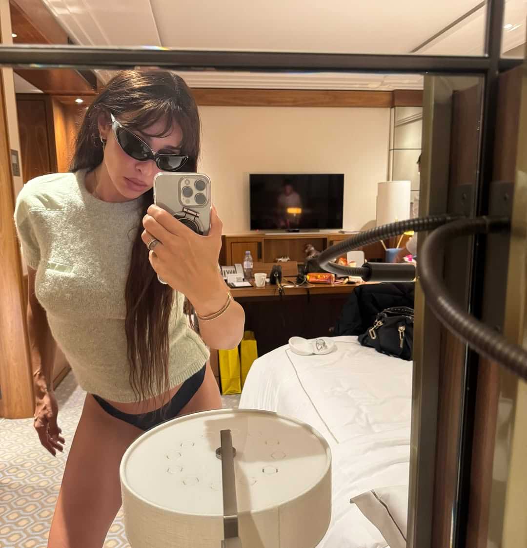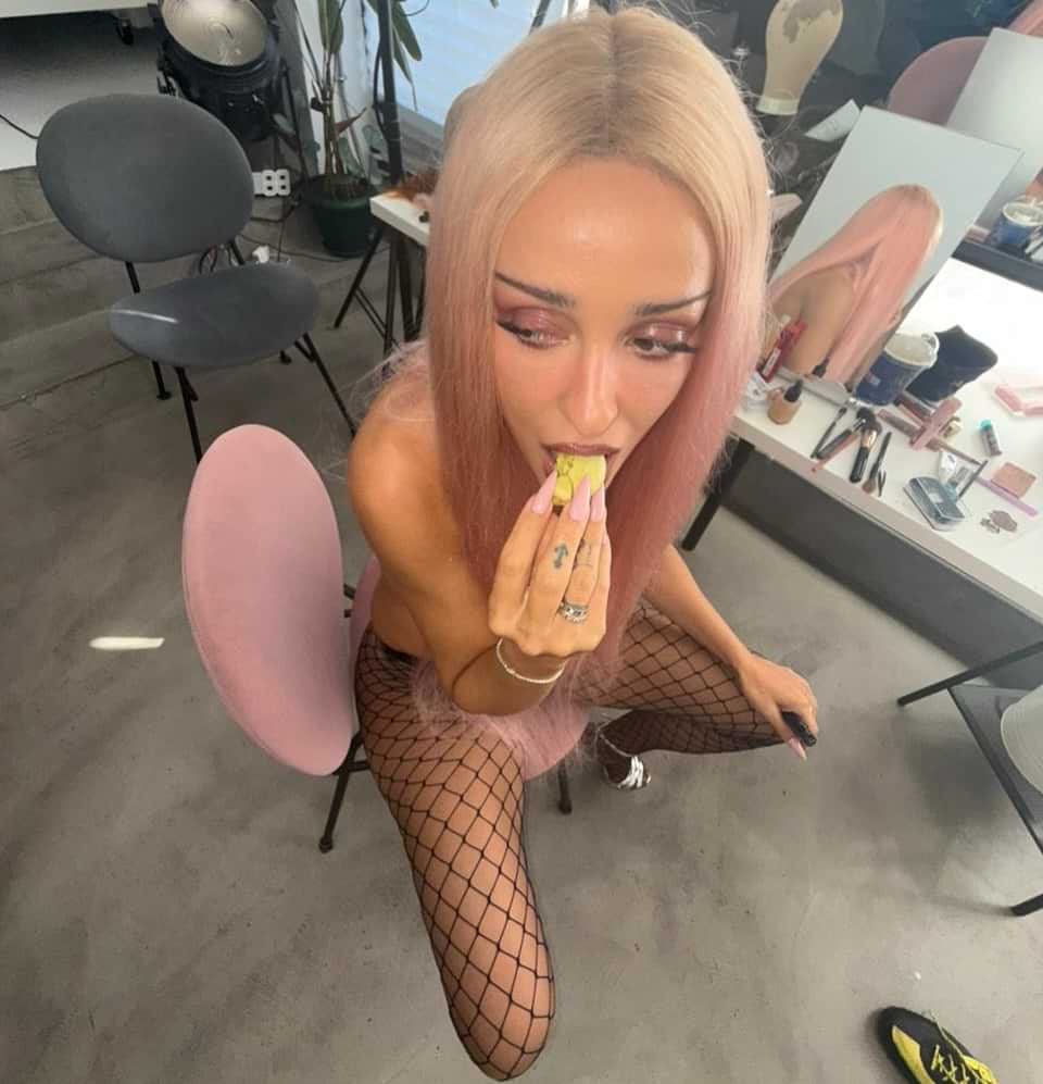Και φυσικά, η Φουρέιρα δεν θα μπορούσε να μην προκαλέσει… ψηφιακό πανικό! Σε δύο από τις φωτογραφίες, η τραγουδίστρια ποζάρει τόπλες – στη μία απολαμβάνει ένα φρούτο σε backstage διάλειμμα, και στην άλλη στέκεται έξω από την είσοδο ενός κτηρίου, με βλέμμα που λέει «ναι, είμαι εγώ και το ξέρω».
