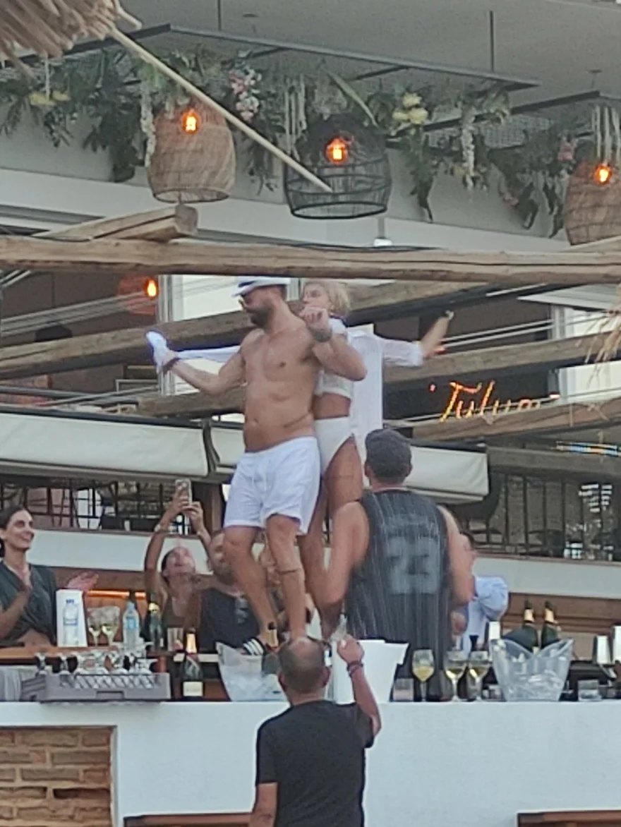 Ωστόσο, φρόντισαν να γιορτάσουν την ευτυχία τους, σε beach bar της Εύβοιας, με τον φωτογραφικό φακό να τους απαθανατίζει σε έναν ξέφρενο χορό πάνω στη μπάρα.