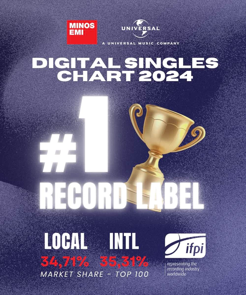 Για ακόμα μία χρονιά η Minos EMI, Α Universal Music Company επιβεβαιώνει την κυριαρχία της στη μουσική σκηνή, κατακτώντας την κορυφή του IFPI Annual Digital Chart Top100 τόσο στο local όσο και στο international ρεπερτόριο!
