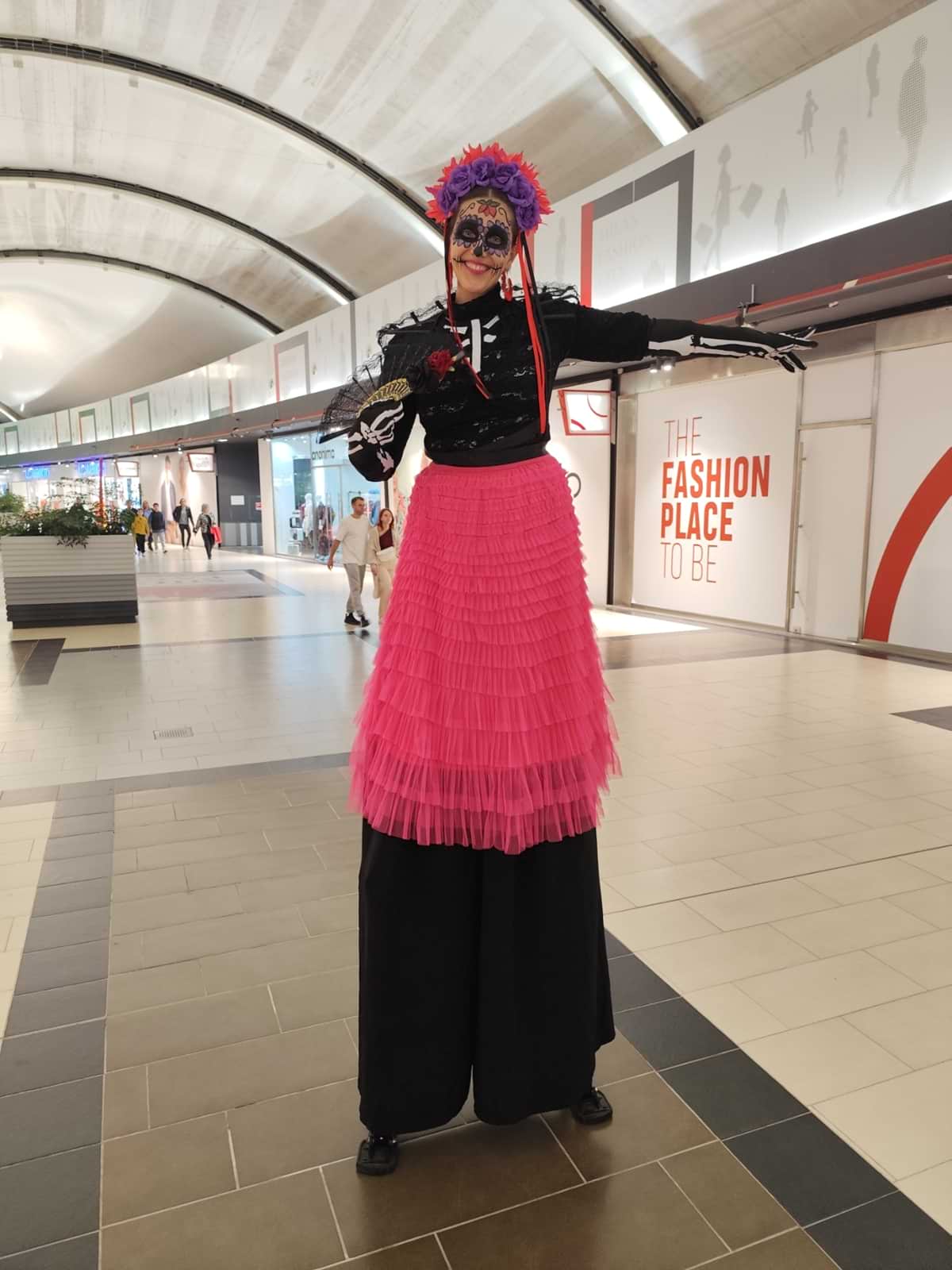 Το απόγευμα, οι δραστηριότητες συνεχίστηκαν με Messy Play & Ξυλοπόδαρο Show, χαρίζοντας στα παιδιά μια ανεπανάληπτη εμπειρία. Μικροί μάγοι και μάγισσες έπλασαν «μαγικά φίλτρα», βούτηξαν τα χέρια τους σε πολύχρωμες «γλίτσες» και «μάτια τεράτων» και δημιούργησαν τις δικές τους Halloween συνταγές γεμάτες φαντασία. Την ίδια στιγμή, ο εντυπωσιακός ξυλοπόδαρος φωτογραφιζόταν με τα παιδιά, σκορπίζοντας γέλιο και χαρά σε κάθε του βήμα.