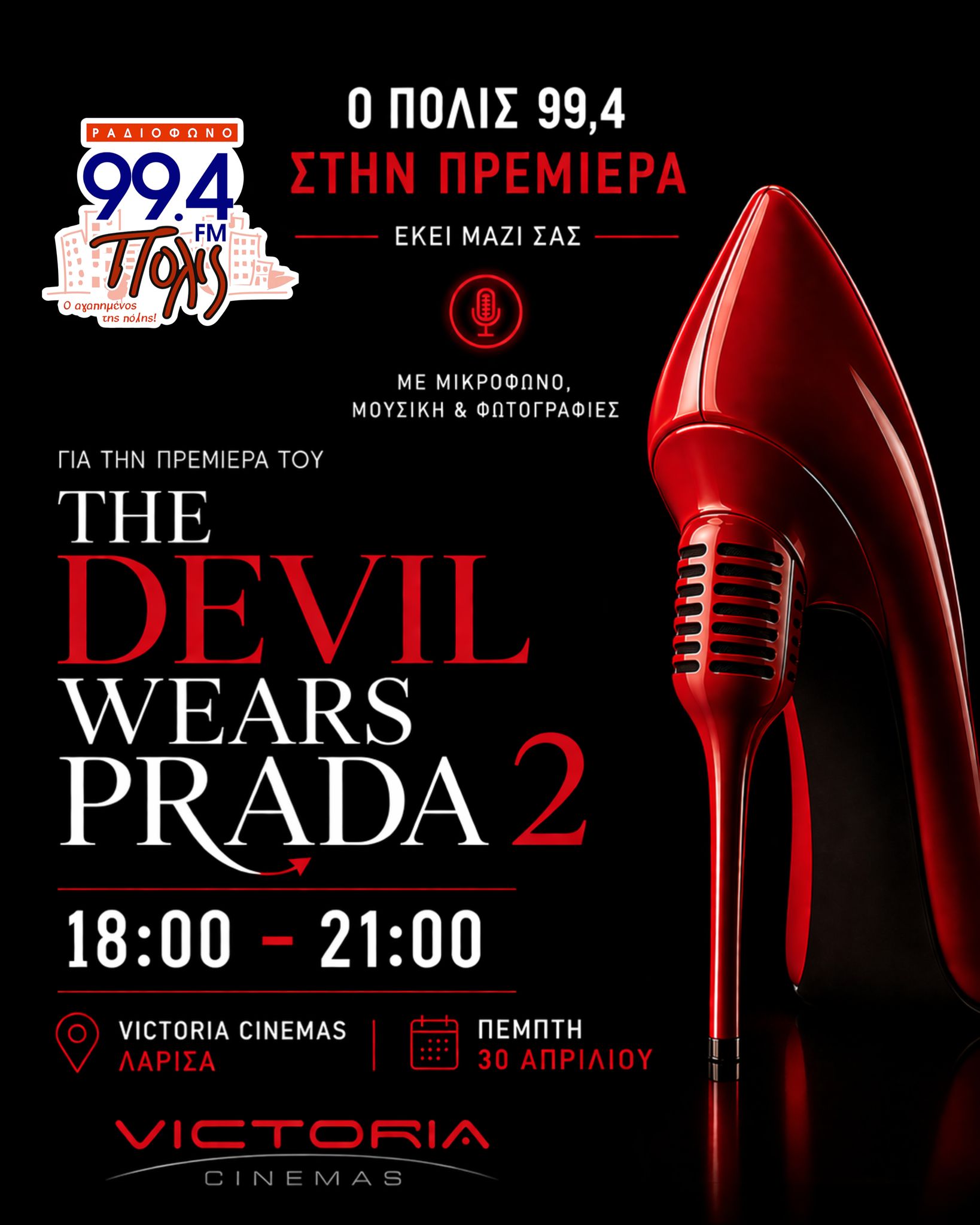Από τις 18:00 έως τις 21:00, η ομάδα του Πόλις 99,4 δίνει το «παρών» στα Victoria Cinemas, φέρνοντας μαζί , τραγούδια, μικρόφωνο και τα πιο ωραία vibes.