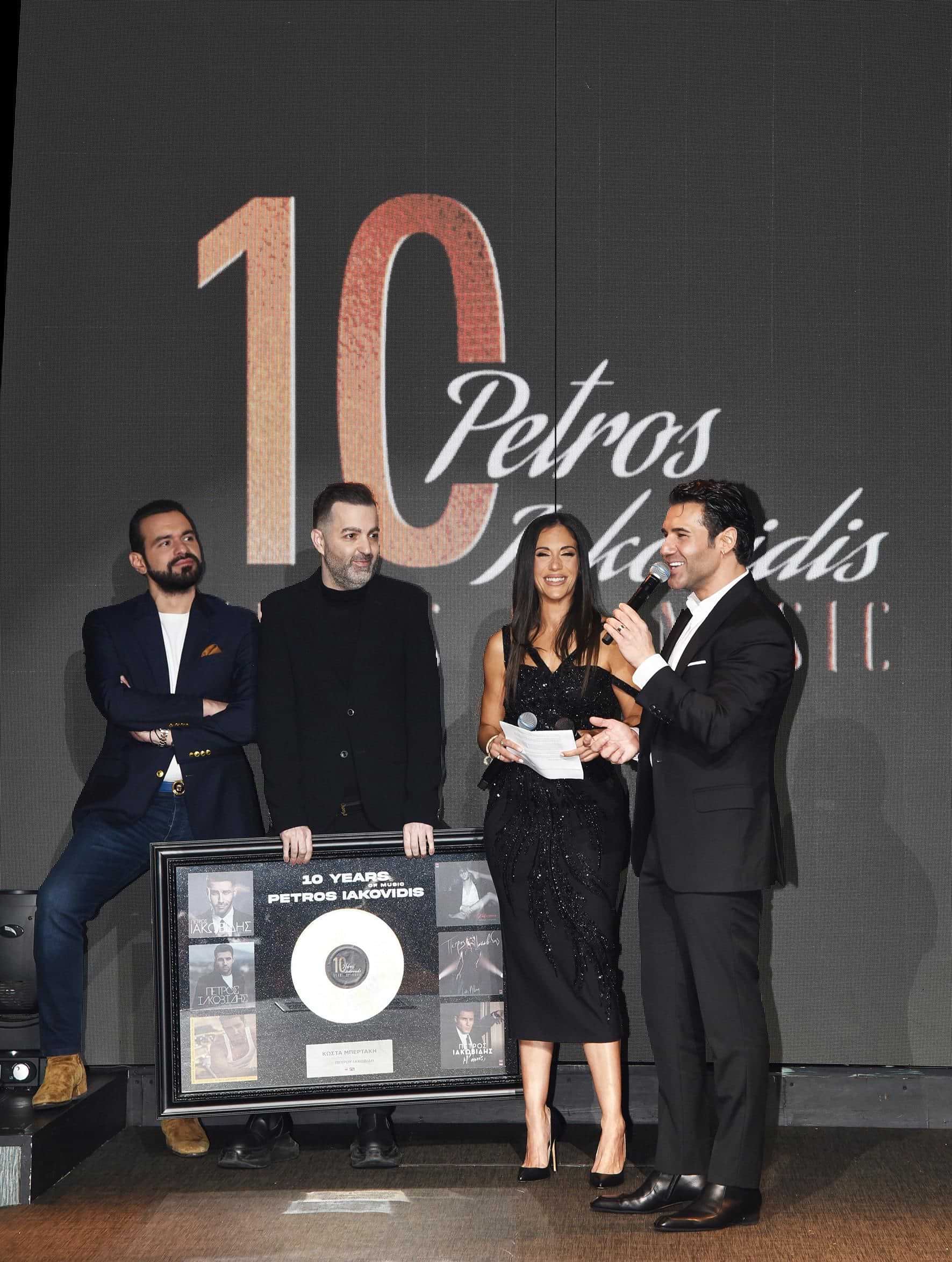 Ο συνιδρυτής και CEO της Panik, Γιώργος Αρσενάκος, του απένειμε τιμητική πλακέτα για τα 10 χρόνια στη δισκογραφία και, μεταξύ άλλων, ανέφερε: «ο Πέτρος είναι ένας άνθρωπος χορτάτος από αγάπη, ταλέντο και επιτυχία… Είναι ένας άνθρωπος πιστός, καλό παιδί και με αστείρευτο ταλέντο».