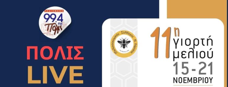 insert_link Polis Live Events Μελισσοκομική Γιορτή 2025: Τετάρτη 19 Νοεμβρίου ο Πόλις 99,4 live στην Κεντρική Πλατεία της Λάρισας today19 Νοεμβρίου 2025