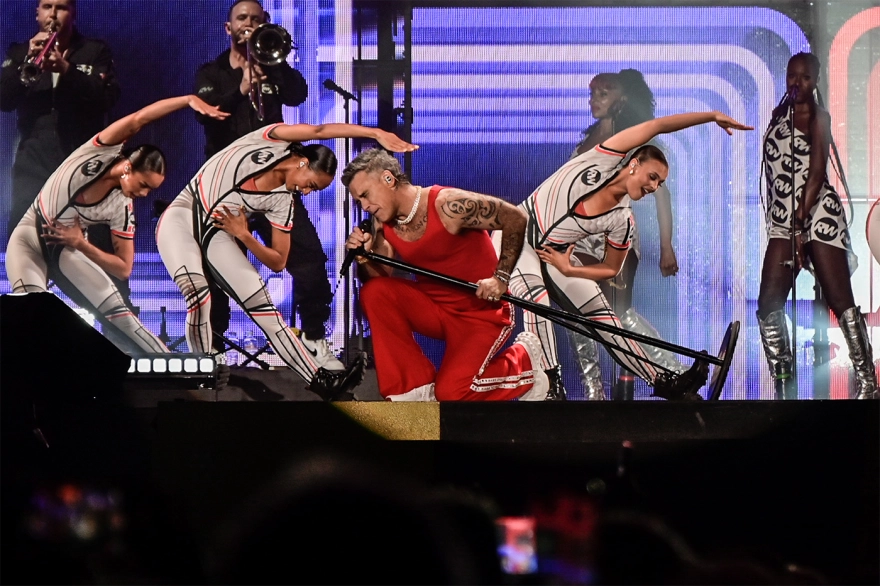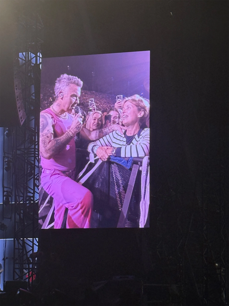 Στα highlights της χθεσινής παράστασης του Robbie ήταν ο διάλογος με τον….εαυτό του στην εφηβική ηλικία, οι ασύλληπτες κορώνες του στο «New York-New York» και στο «My way» που άφησαν κόσμο με το στόμα ανοιχτό και φυσικά η αφιέρωση στην Χάιδω.