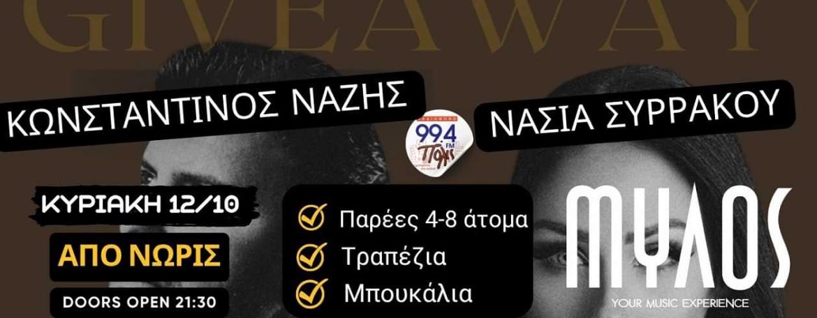 ΜΥΛΟΣ – 12 Οκτωβρίου: Κερδίστε τραπέζια με μπουκάλι για παρέες με τον Κωνσταντίνο Νάζη που την Κυριακή αλλάζει