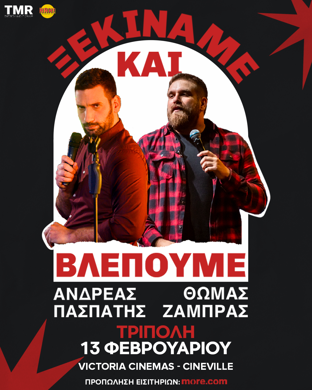 Εισιτήρια εδώ: https://www.more.com/gr-el/tickets/standupcomedy/thomas-zampras-andreas-paspatis-ksekiname-blepoume-on-tour/